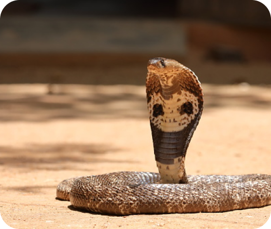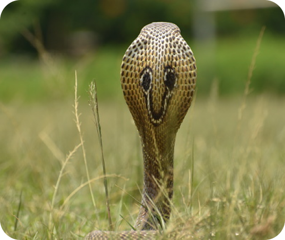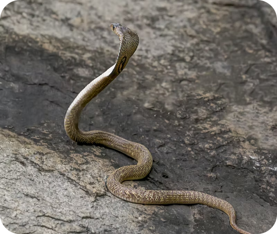 The Indian cobra (Naja naja), also known as the spectacled cobra, Asian cobra, or binocellate cobra, is a species of cobra found in India, Pakistan, Bangladesh, Sri Lanka, Nepal, and Bhutan, and a member of the "big four" species that are responsible for the most snakebite cases in India.It is distinct from the king cobra which belongs to the monotypic genus Ophiophagus. The Indian cobra is revered in Hindu mythology and culture, and is often seen with snake charmers. It is a protected species under the Indian Wildlife Protection Act